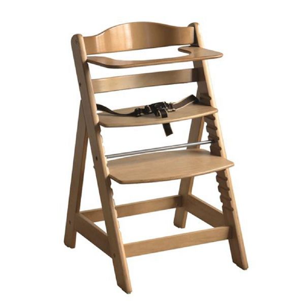Højstol lavet af træ af gummi, som er nem at montere. Sædet justerbart, og egnet til babyer fra 6 måneder. (Læs mere)