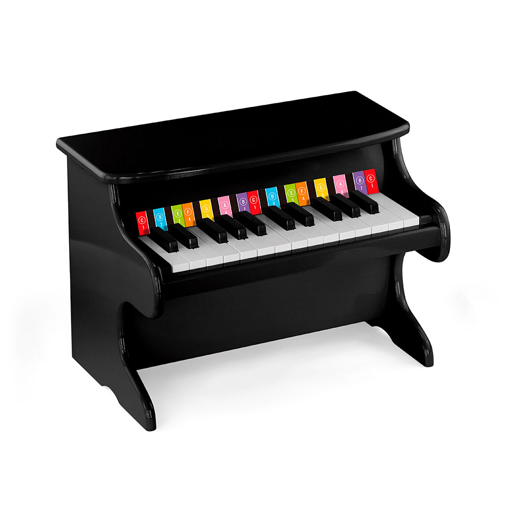 Mit første klaver er et klassisk sort klaver – til både piger og drenge. Det er fremstillet i træ mig malet med en flot blank sort. Over alle tangenter er der farver, tal og bogstaver således man kan lære at spille kendte sange. Klaveret måder 300 x 255 (Læs mere)